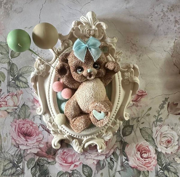 Plongez dans un univers féerique avec Choubidou, l’adorable ourson niché dans un cadre délicatement travaillé. Disponible en noir ou blanc, cet ourson magique avec ses ballons et son petit cœur rose capture l’innocence et la tendresse dans un écrin raffiné.