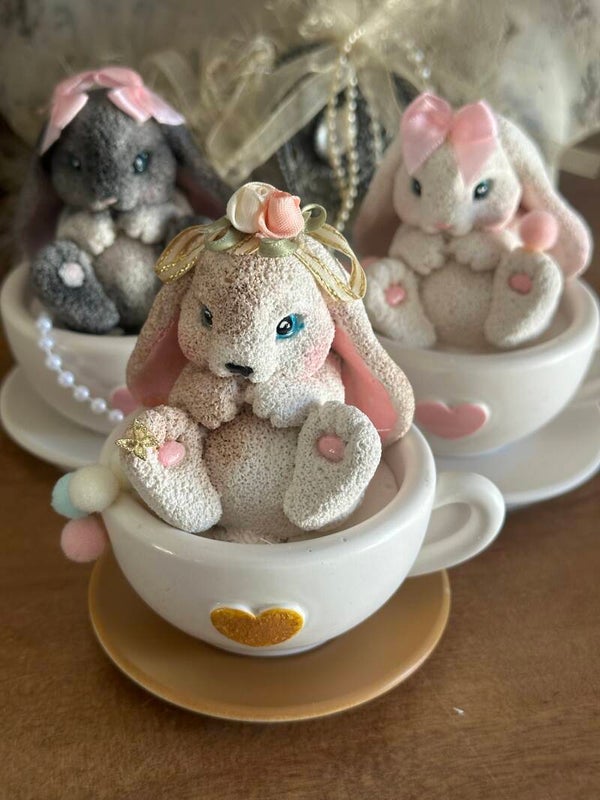 Chaque tasse recèle un secret, un murmure du vent, une promesse de douceur. Que ce soit en blanc, noir ou marron, chaque lapin a son propre charme, délicatement orné de rubans soyeux, de perles lumineuses et de touches poudrées rappelant l’aube naissante.