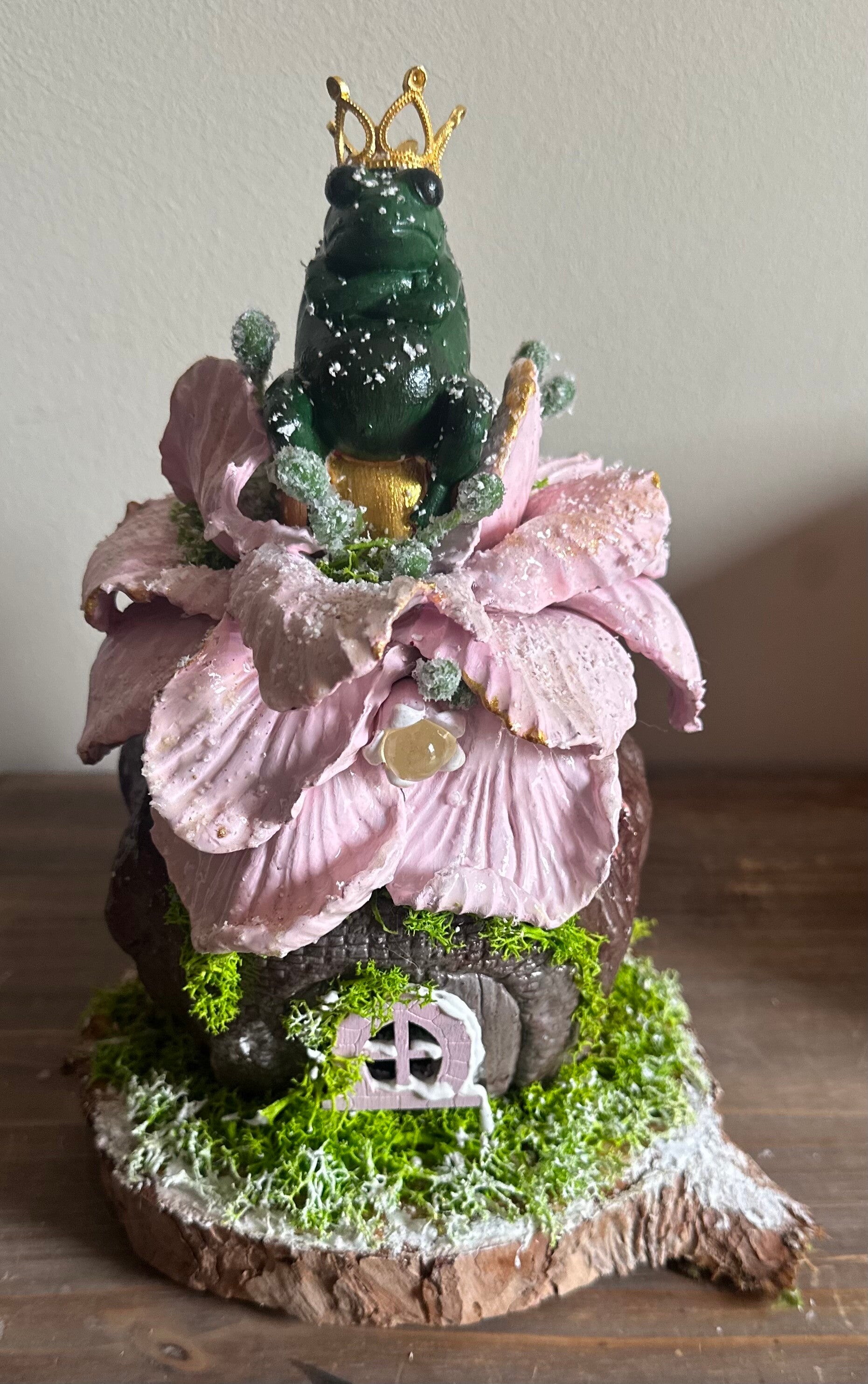 Sous les pétales rosés d’une fleur géante, se cache une demeure enchantée où règne un petit roi pas comme les autres… le Prince Grenouille ! 🐸💫