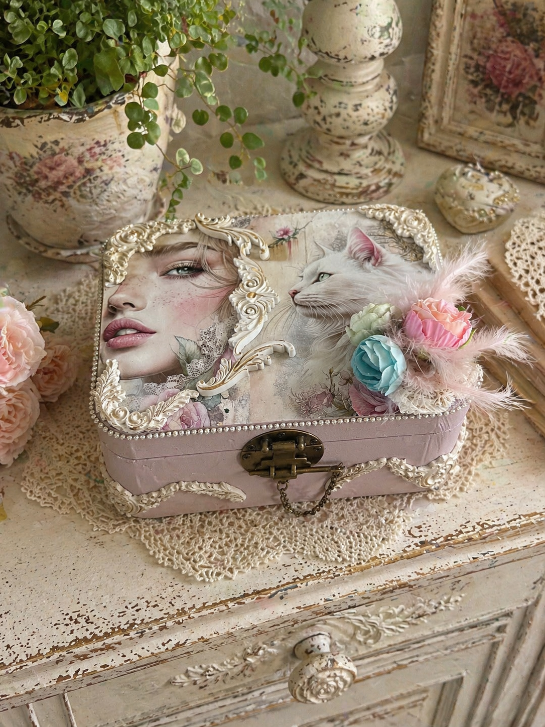 Plongez dans un univers délicat et poétique avec ce coffret entièrement décoré à la main, véritable pièce unique où chaque détail raconte une histoire…